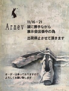 11/16~21 誠に勝手ながら展示会出展の為出荷停止させて頂きます。 オーダーは承っておりますのでよろしくお願いいたします。 戻りましたら順次出荷させて頂きます。